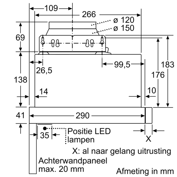 Diameter luchtafvoeraansluiting Ø 150 mm, 120 mm
