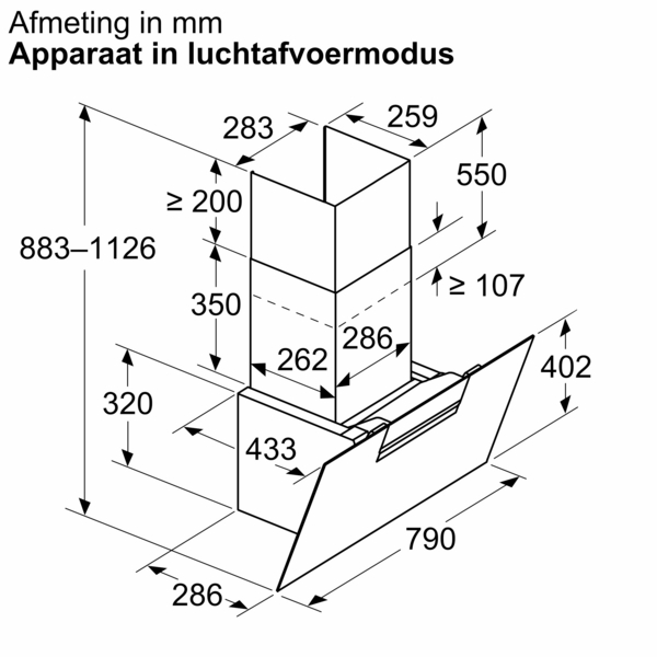 Afmetingen luchtafvoer (hxbxd): 88.3 cm-112.6 cm x 79.0 cm x 43.3 cm