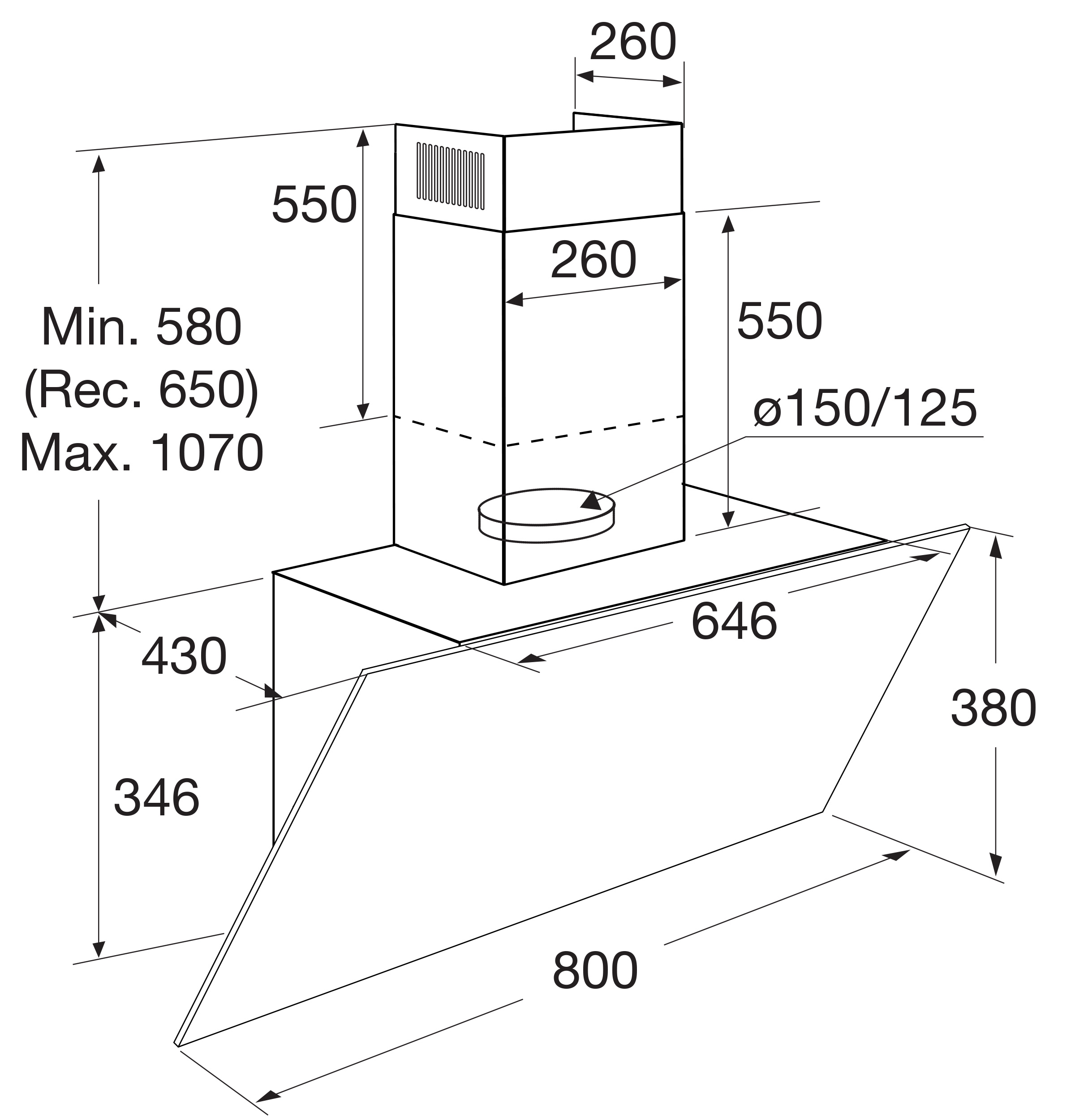 Luchtafvoer afzuigcapaciteit (min/max/int): 320 / 620 / 740 m³/h
