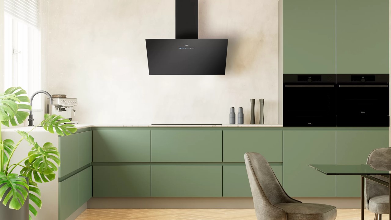 Uitgevoerd in matzwart met zwart glazen front