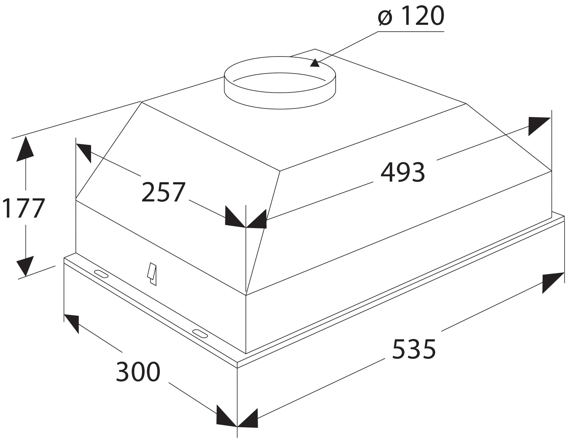 voor installatie boven een kookeiland of in een schouw