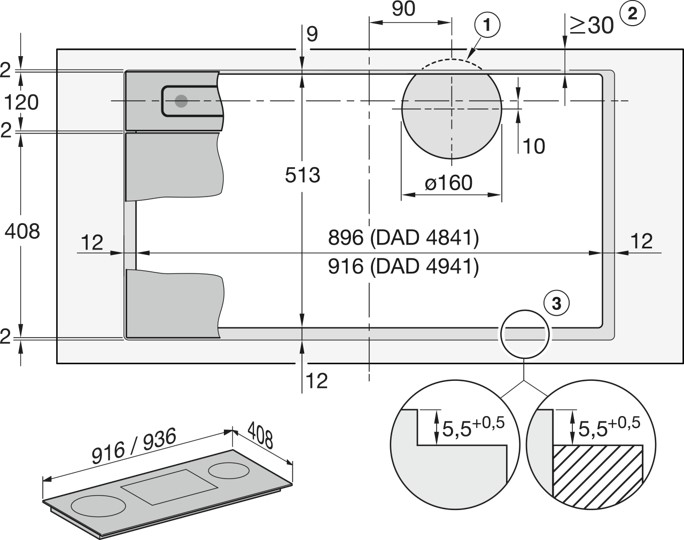 Benodigde, apart te bestellen actieve koolstoffilters: DKF 30-P, DKF 30-R