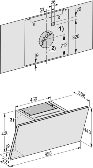 Totale hoogte afzuigkap circulatiesysteem max. in mm: 443