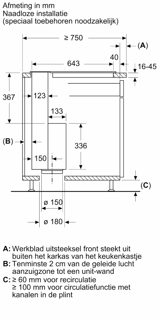 Diameter luchtafvoeraansluiting Ø150 mm