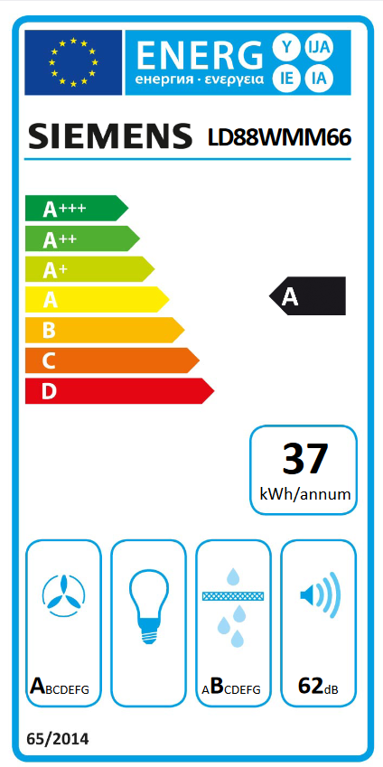 Energieklasse volgens EU-norm nr. 65/2014:A