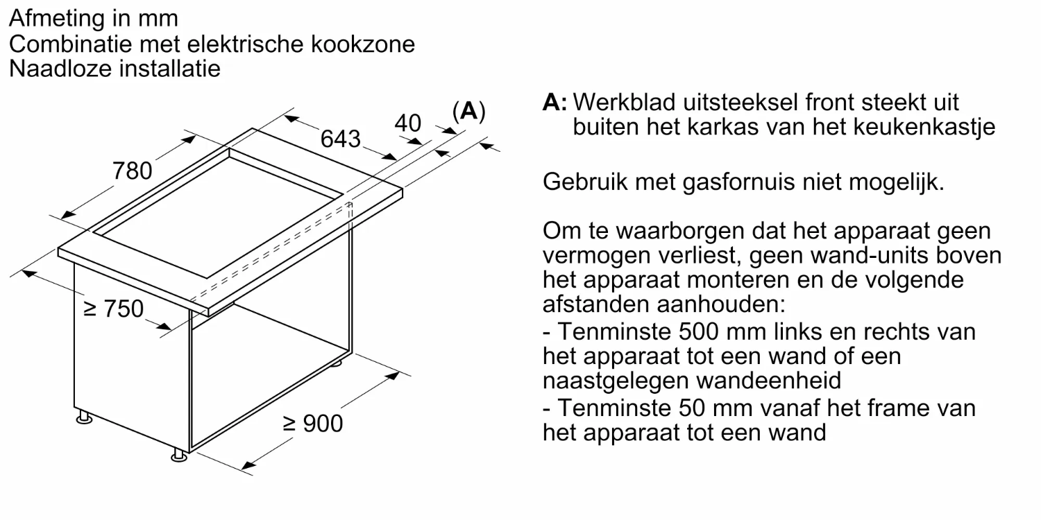 Combinatie met gaskookplaten niet mogelijk