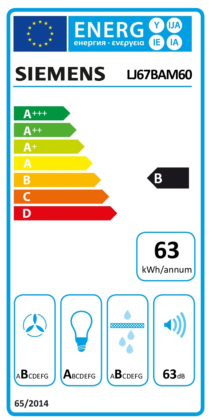 Energieklasse volgens EU-norm nr. 65/2014: B