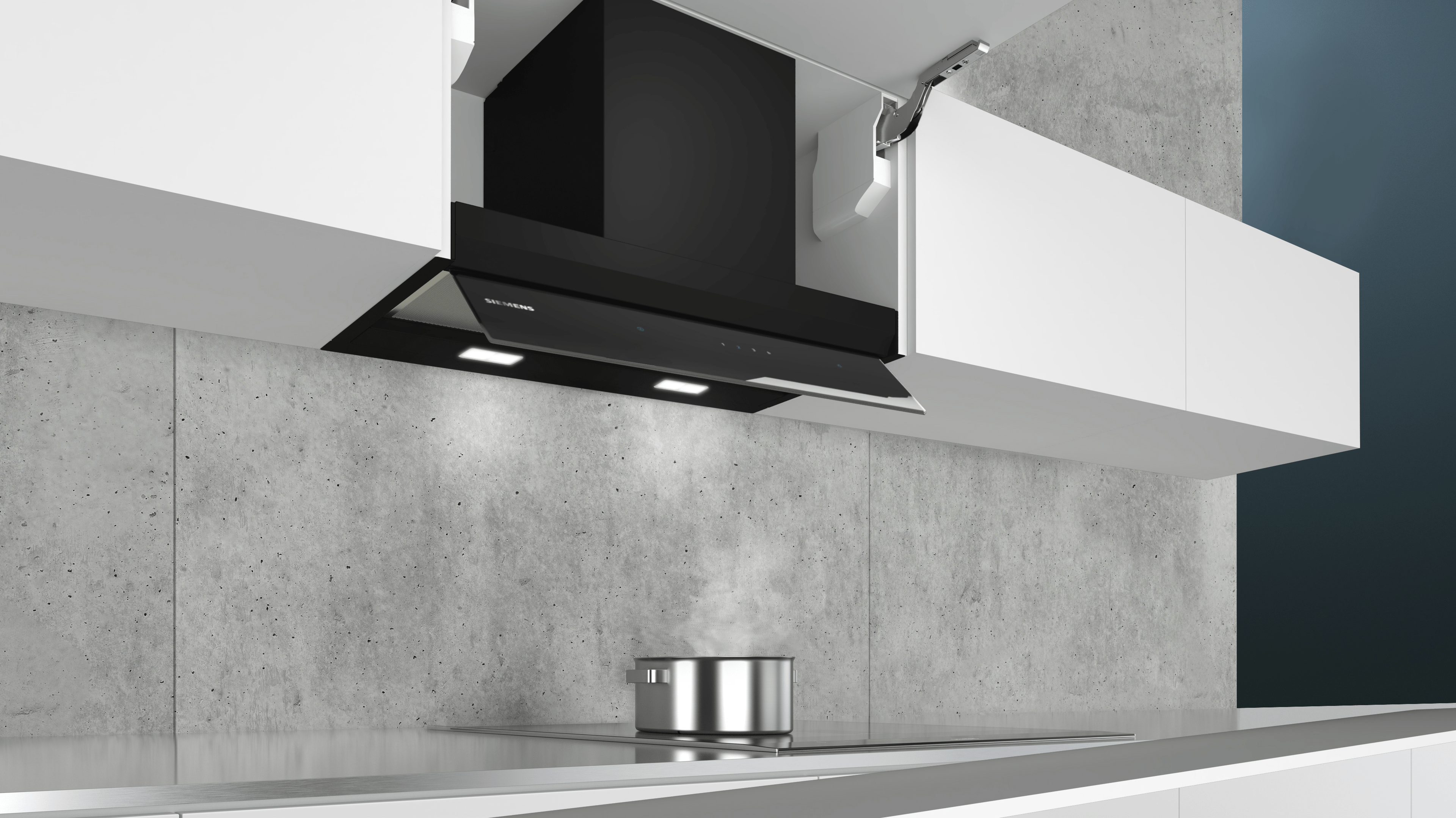 Ruimtebesparend, compact ontwerp voor extra opbergmogelijkheden op de afzuigkap en tot max. 10 kg opslaggewicht per zijde.