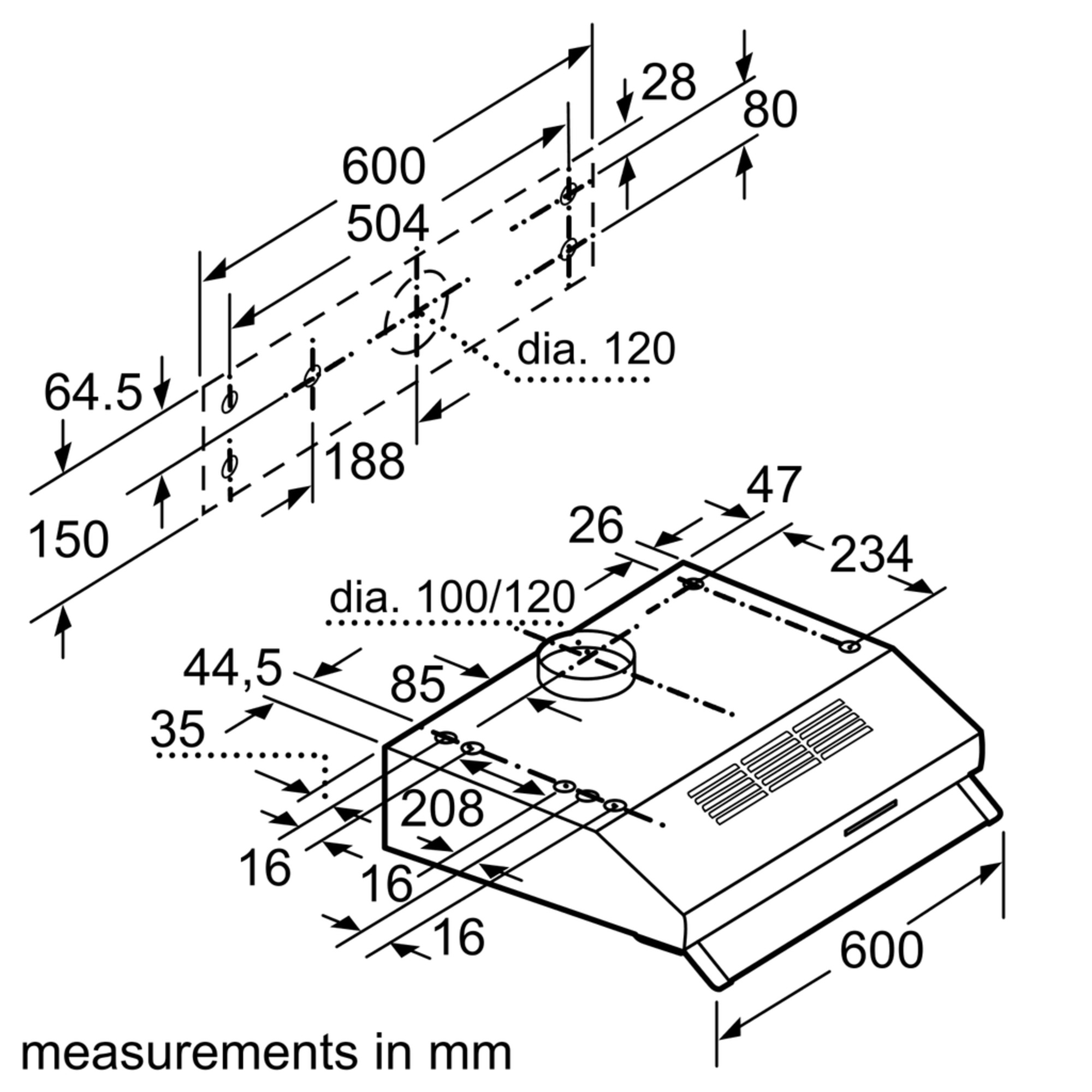 Afmetingen recirculatie (hxbxd): 150-150 x 600 x 482 mm