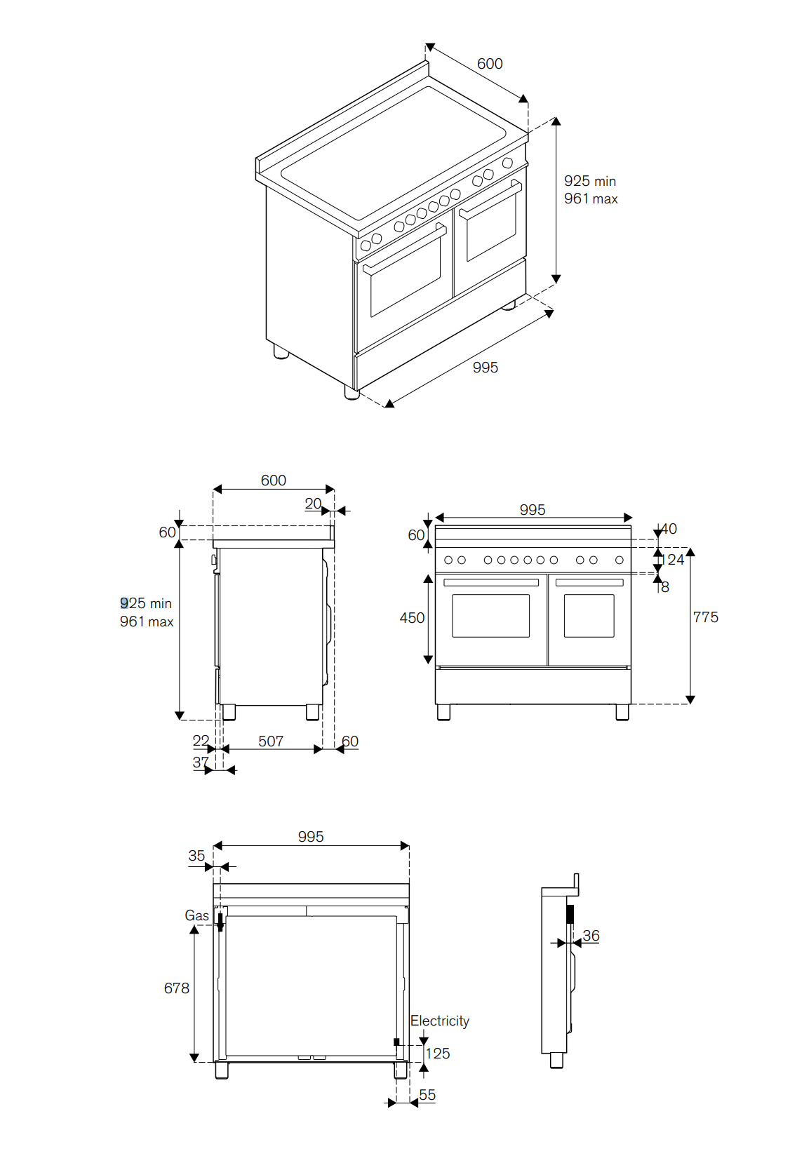 inhoud grote oven: 69 l (bruto)/59 l (netto), inhoud kleine oven: 54 l (bruto)/42 l (netto)