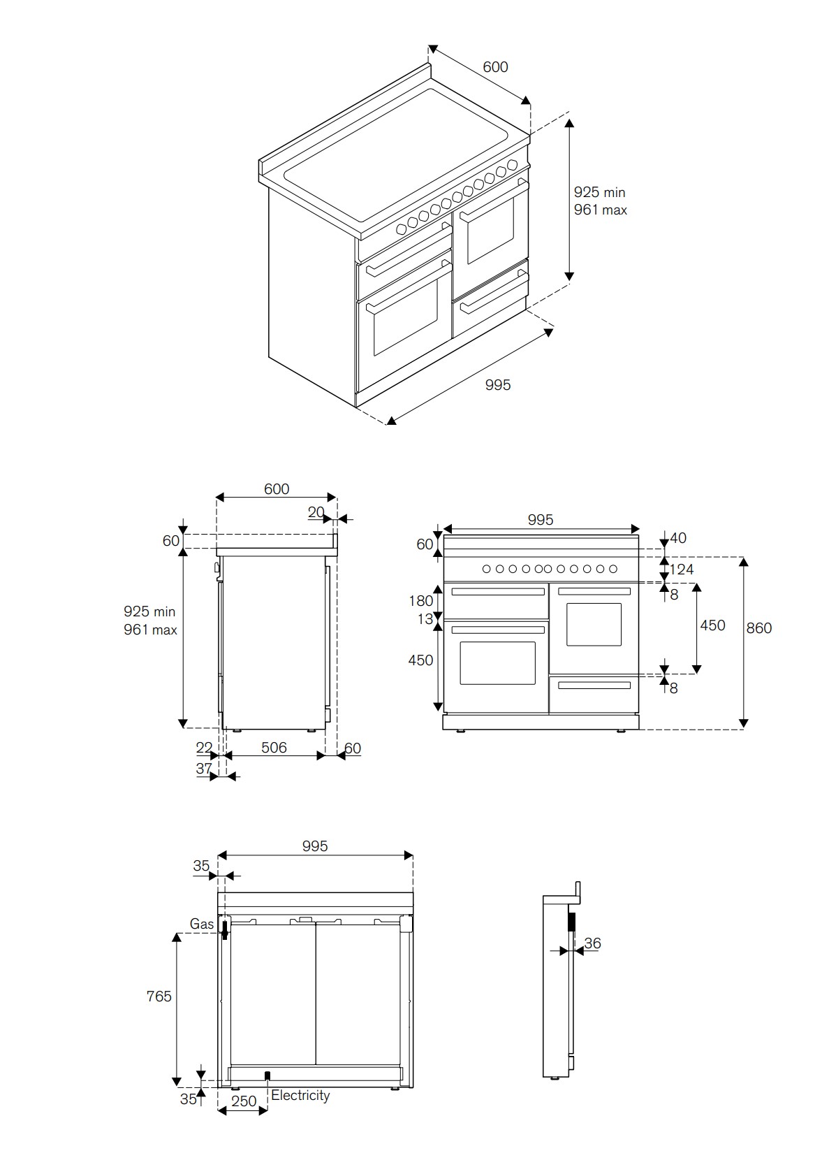 inhoud grote oven: 69L, inhoud kleine oven 54L, grill 24L