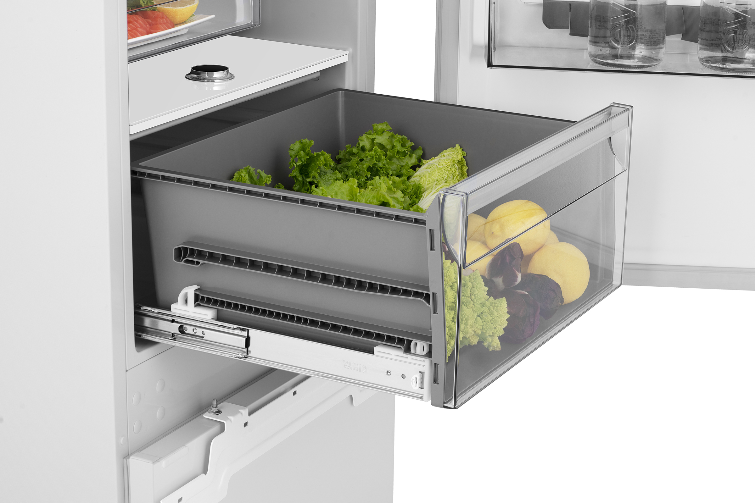 Anti-bacteria groentelade met luchtvochtigheidsregeling op telescopische geleiders