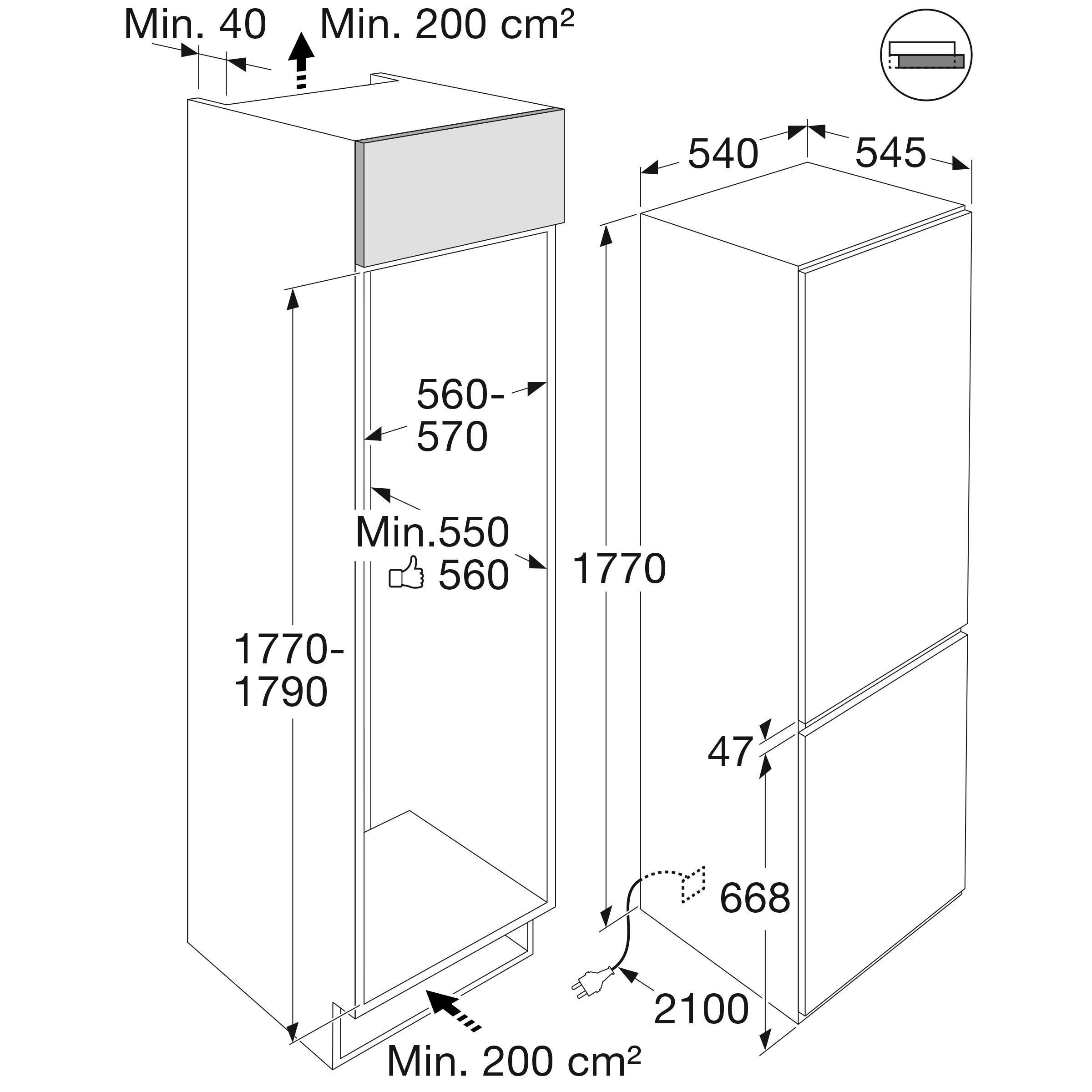 Buitenmaten (hxbxd): 1770 x 540 x 545 mm
