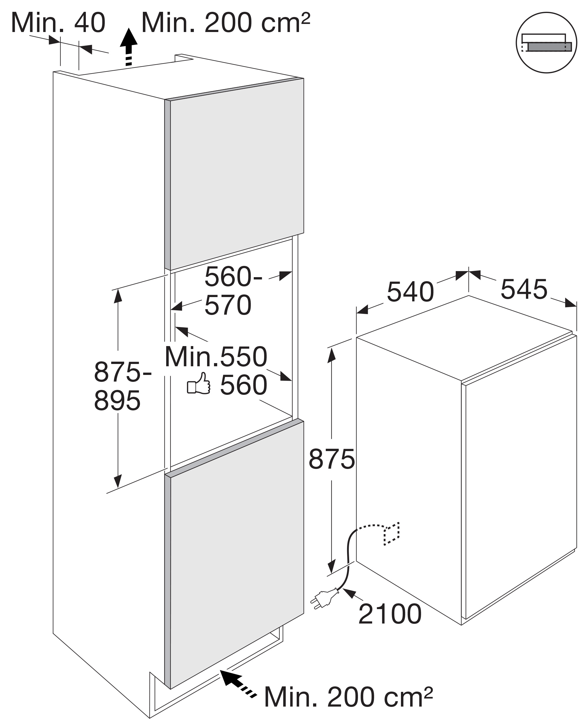Buitenmaten (hxbxd): 875 x 540 x 545 mm