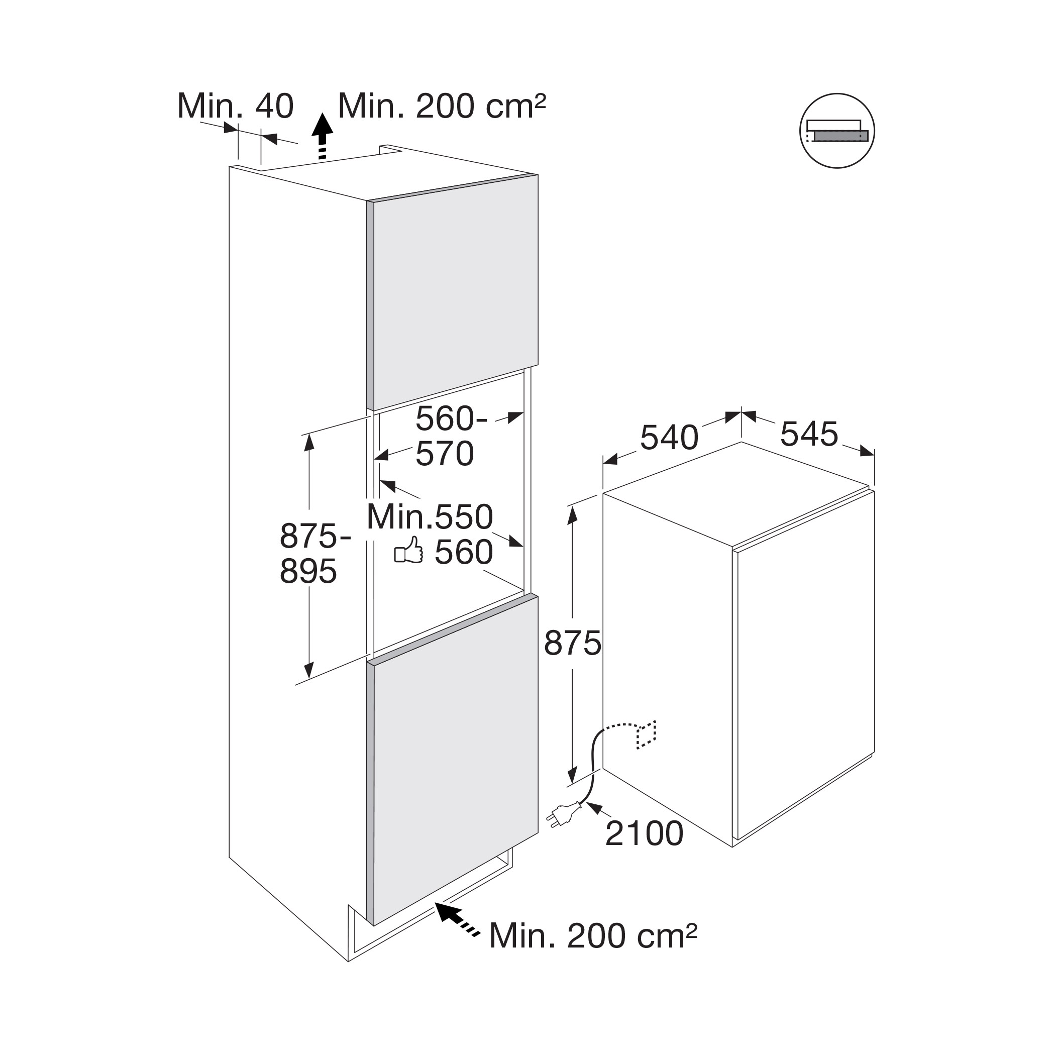 Buitenmaten (hxbxd): 875 x 540 x 545 mm