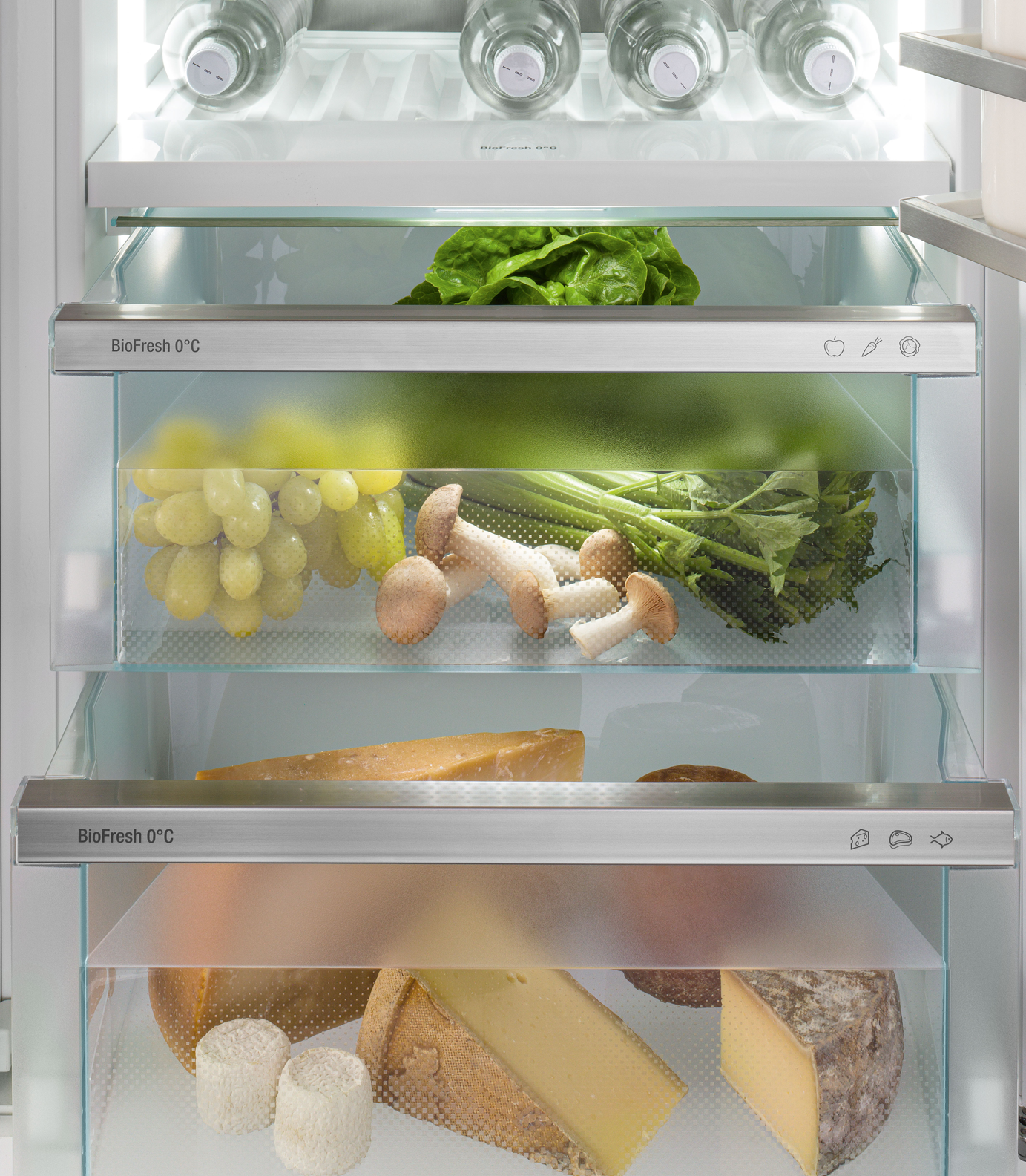3 BioFresh-Safes met SoftTelescopic, 2 Fruit & Vegetable-Safes, 1 Meat & Dairy-Safe