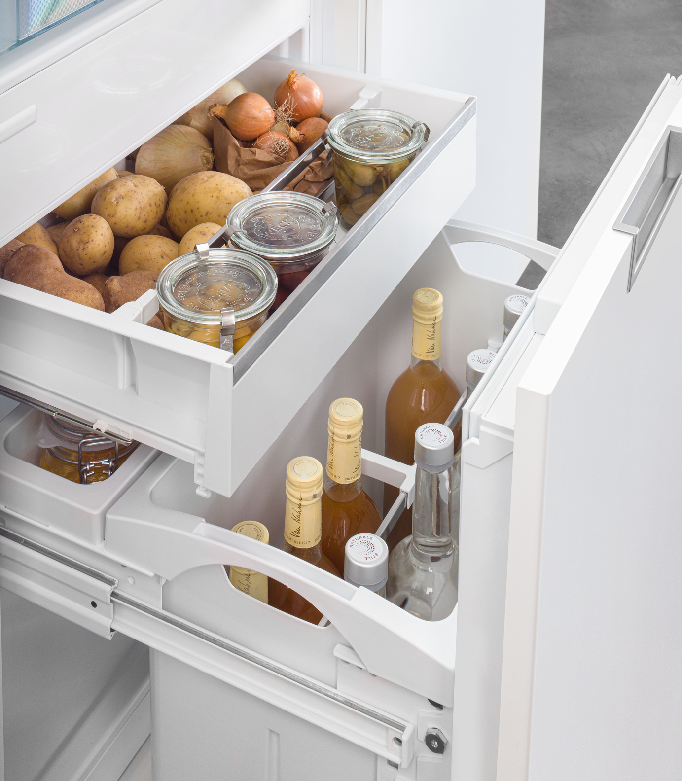 2 BioFresh-Safes op telescooprails, 1 Fruit & Vegetable-Safe, 1 Meat & Dairy-Safe