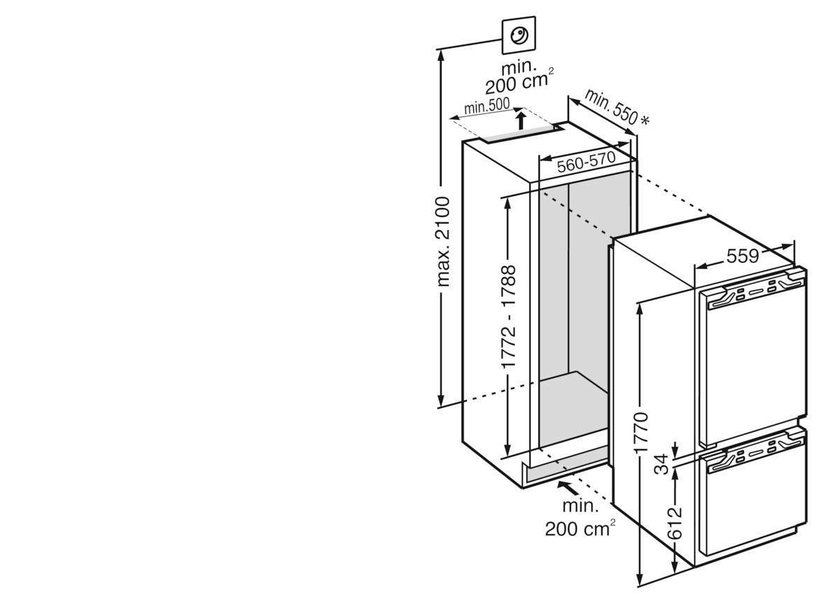 Totaal volume: 265 l (Koeldeel: 83,0 l / BioFresh: 70,9 l / keldervak: 95,9 l / Diepvriesgedeelte: 15,9 l)