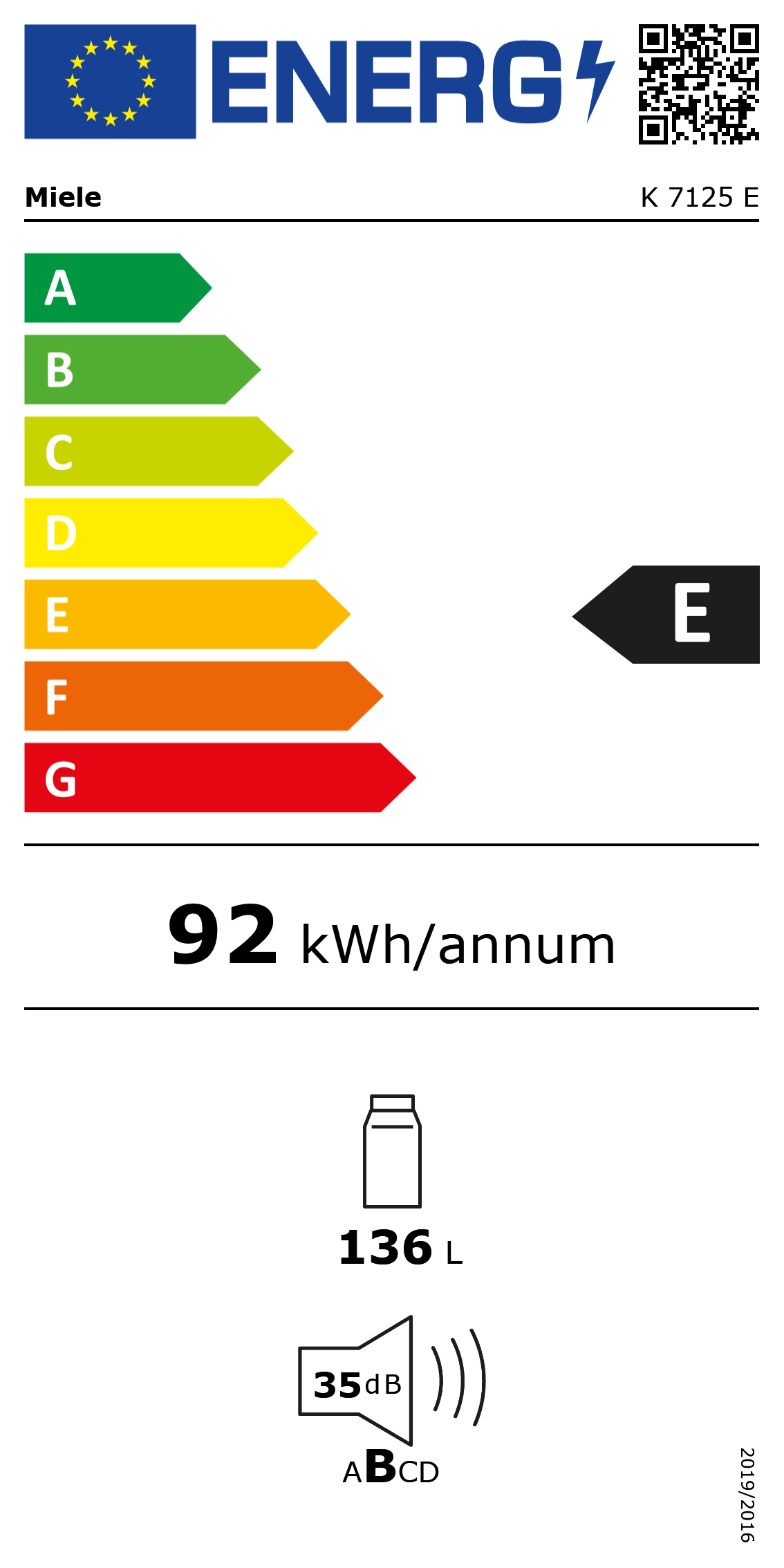 Jaarlijks energieverbruik in kWh: 92,00