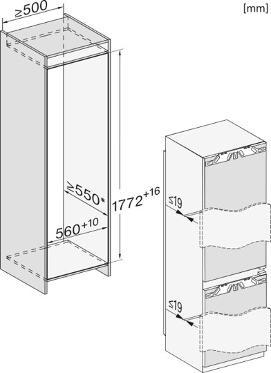 Breedte in mm 559, Hoogte in mm 1770, Diepte in mm 546