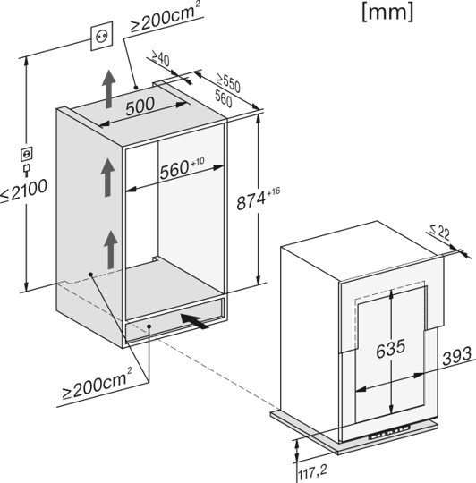 Breedte in mm 557, Hoogte in mm 872, Diepte in mm 553