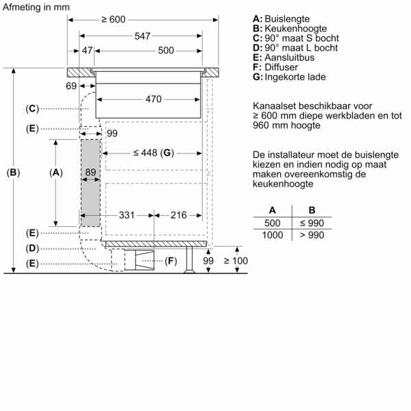 De meegeleverde accessoires voor recirculatie direct achter de kast maakt eenvoudige en snelle installaties mogelijk en kan worden gepland in alle werkbladdieptes van ?60 cm