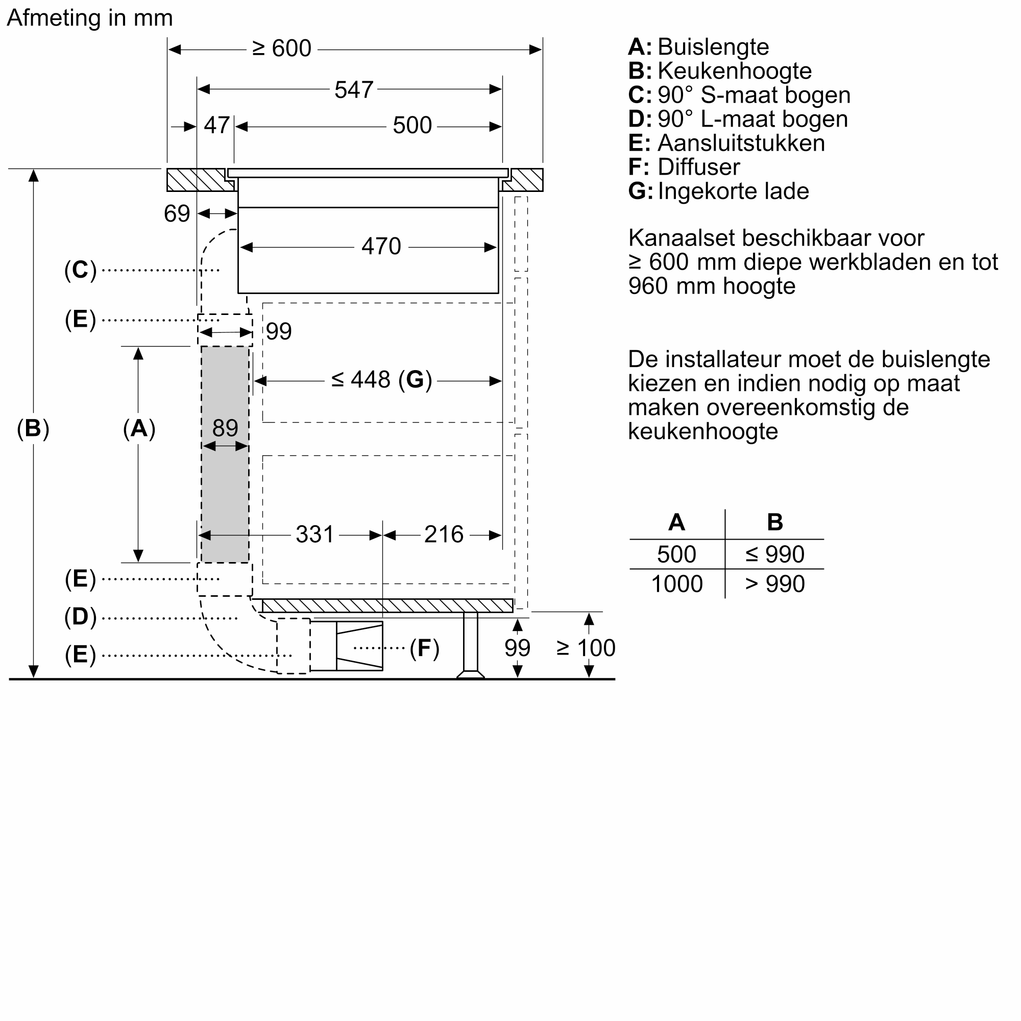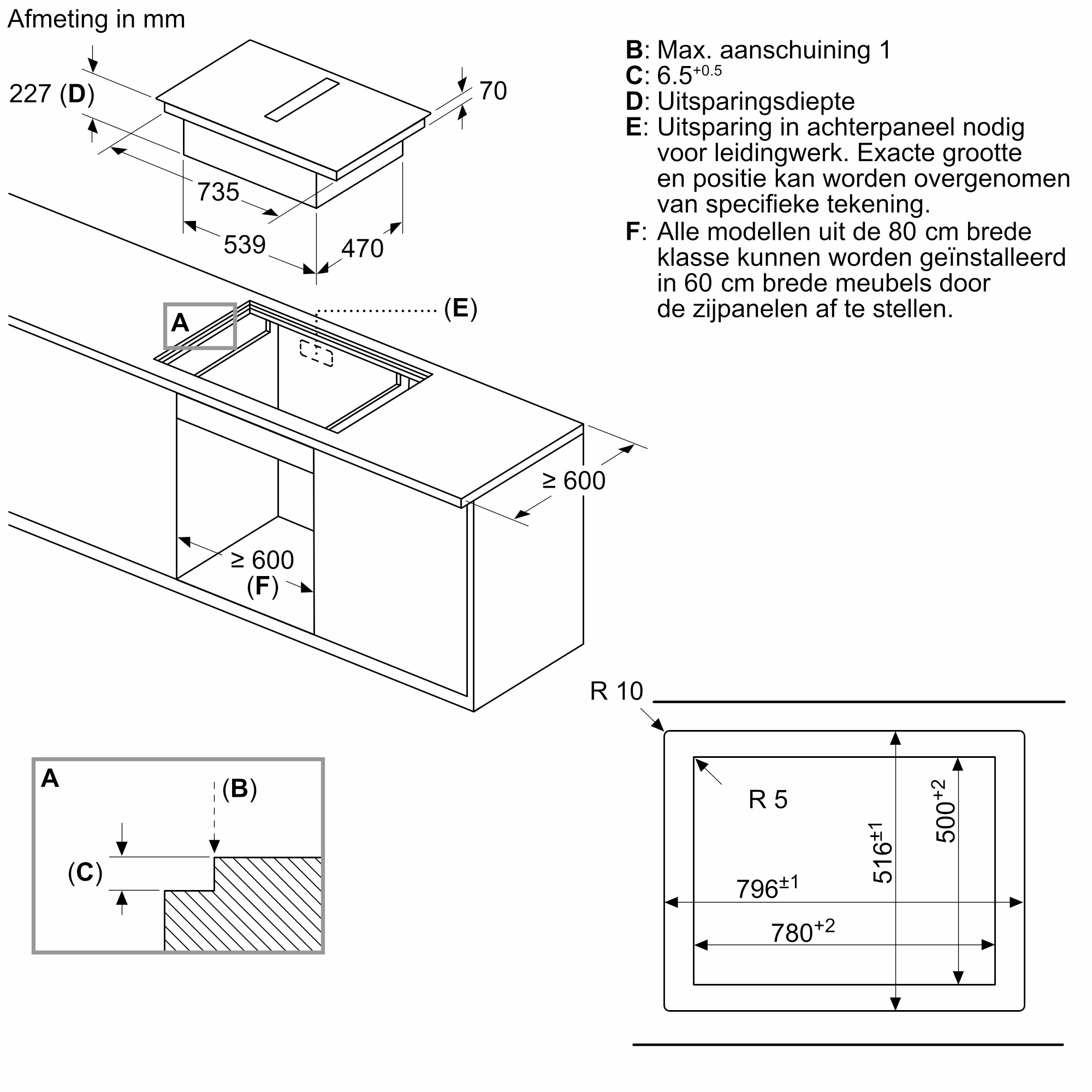 Voor installatie in werkbladen van steen, graniet of kunststof. Andere werkbladmaterialen vereisen een geschiktheidscontrole bij de werkbladfabrikant