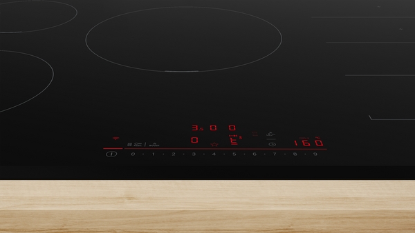 Pan Boost, selecteerbaar via Favorieten knop/Home Connect App (verwachte beschikbaarheid in Q4/2024 via software-update voor apparaten aangesloten op Home Connect): verwarmt pannen sneller dan op de hoogste stand en beschermt tegelijkertijd de pancoating