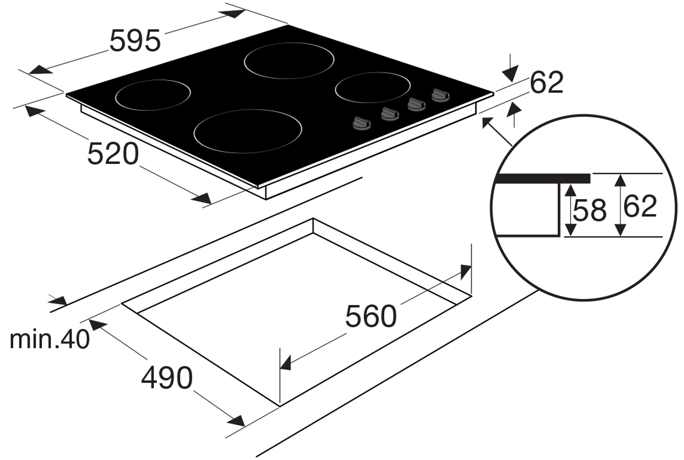 inbouwmaten (hxbxd) 62 x 560 x 490 mm