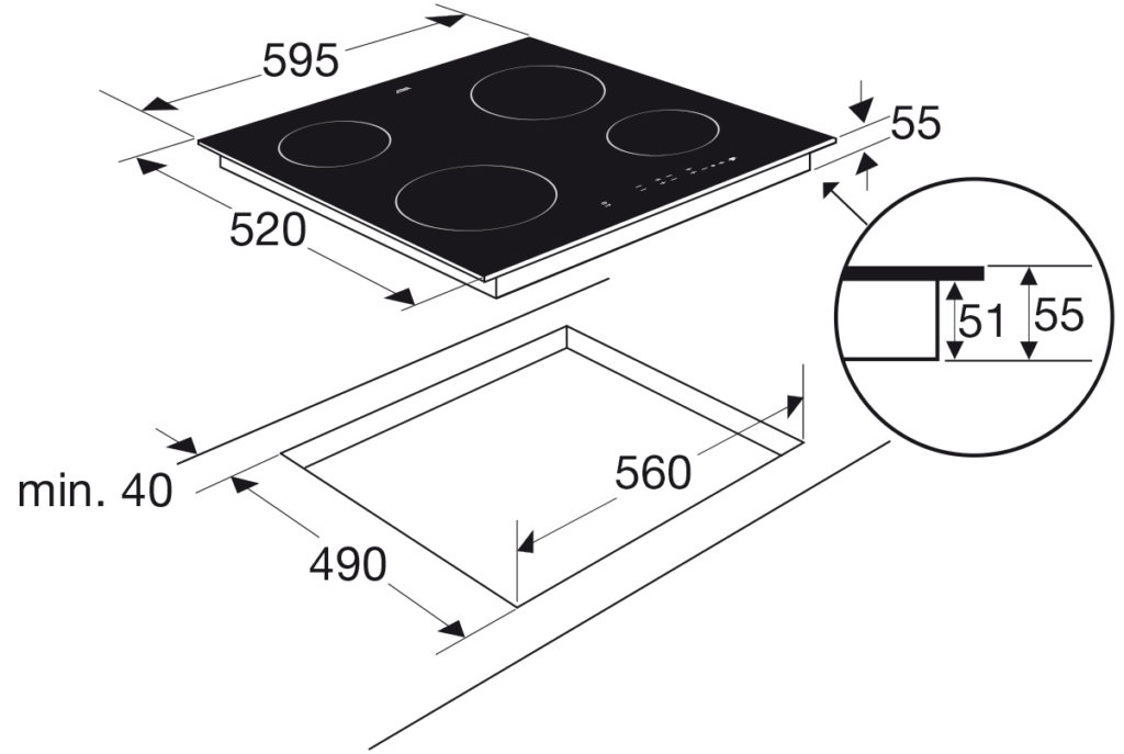 inbouwmaten (hxbxd) 51 x 560 x 490 mm