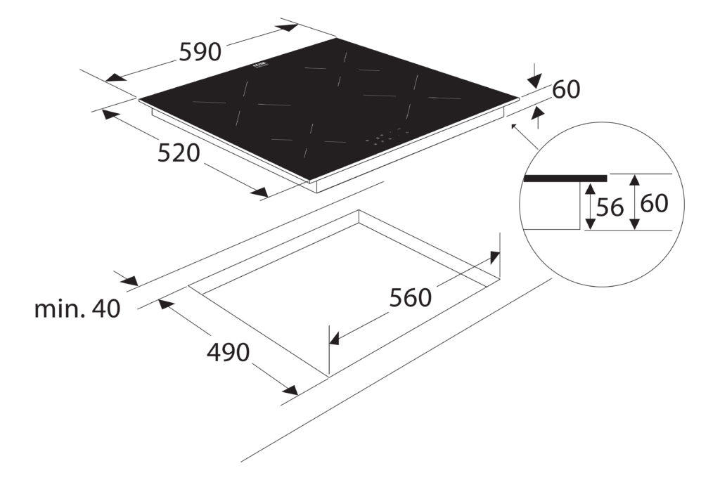 inbouwmaten (hxbxd) 56 x 560 x 490 mm