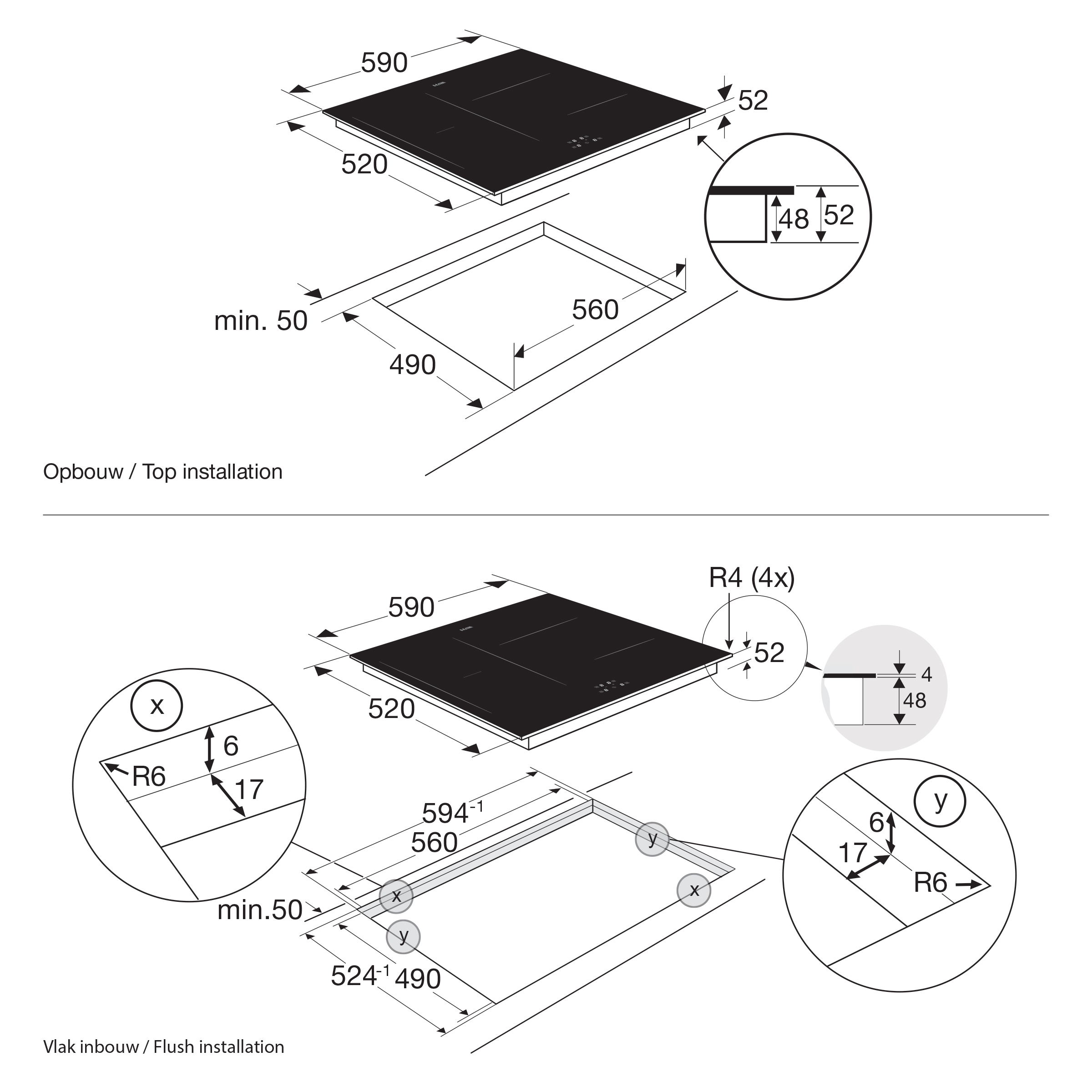 Inbouwmaten (hxbxd) 52 x 560 x 490 mm