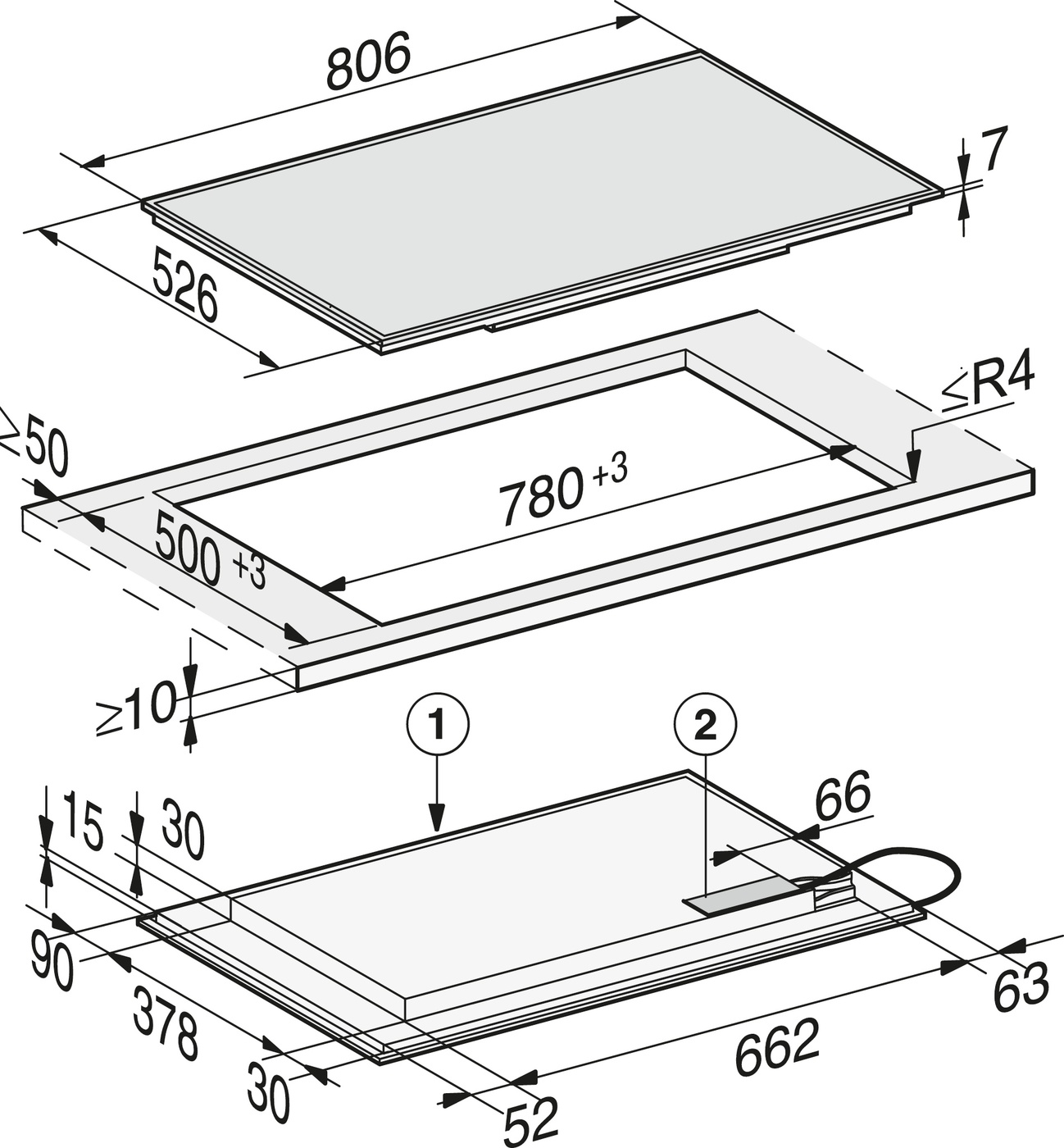 Afmetingen kookplaat in cm 80,6 x 52,6