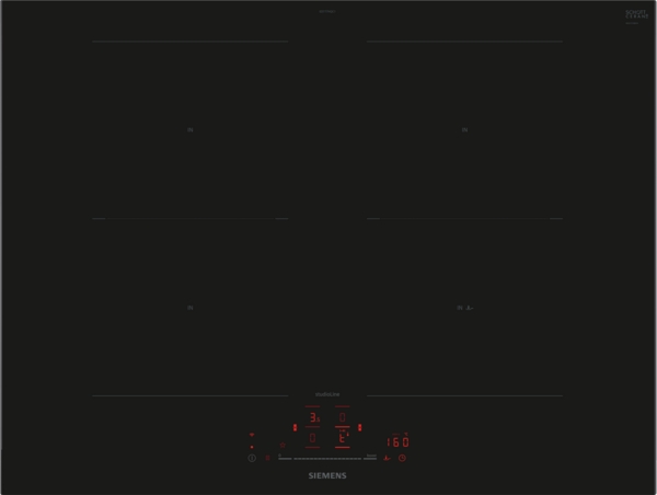 PanBoost, selecteerbaar via Favorieten knop/Home Connect App (verwachte beschikbaarheid in Q4/2024 via software-update voor apparaten aangesloten op Home Connect): verwarmt pannen sneller dan op de hoogste stand en beschermt tegelijkertijd de pancoating