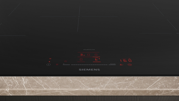 Intelligent hood automatic: Afzuigkap past automatisch de ventilatiesnelheid aan dankzij de kookplaat die continu kookgegevens doorgeeft (met bijpassende afzuigkap en aangesloten Home Connect account)