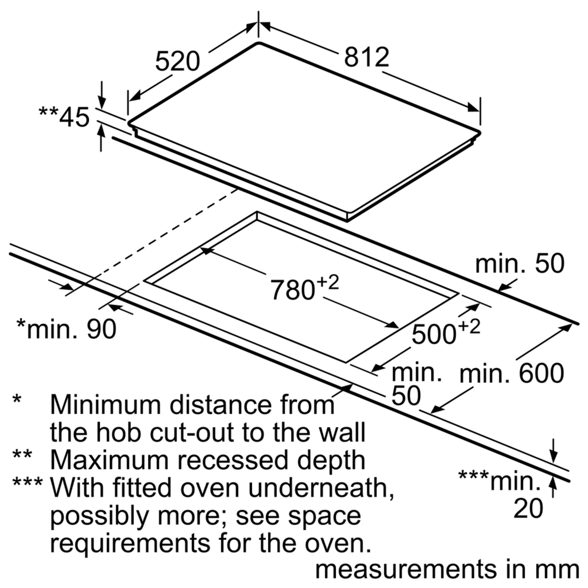 Inbouwmaten (hxbxd): 45 x 780-780 x 500-500 mm