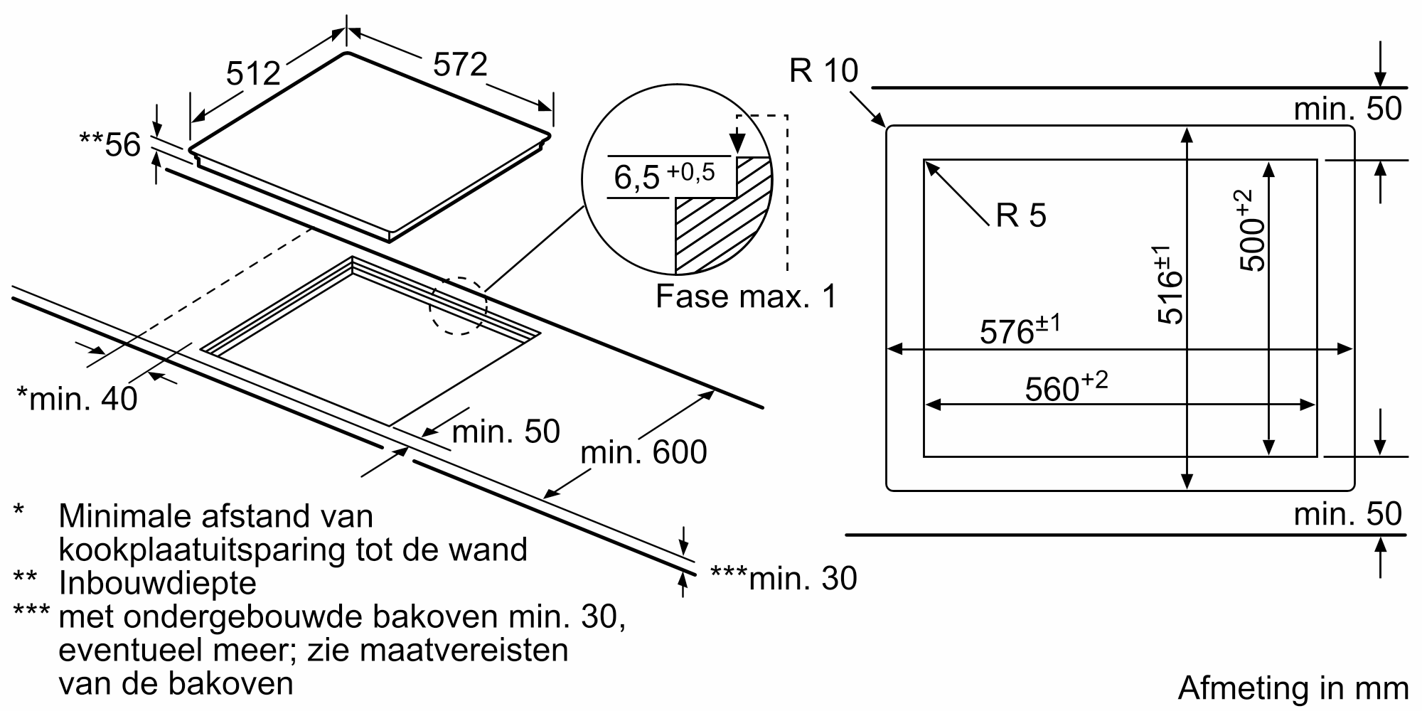 Inbouwmaten (hxbxd): 5.6 cm x 57.6 cm x 51.6 cm