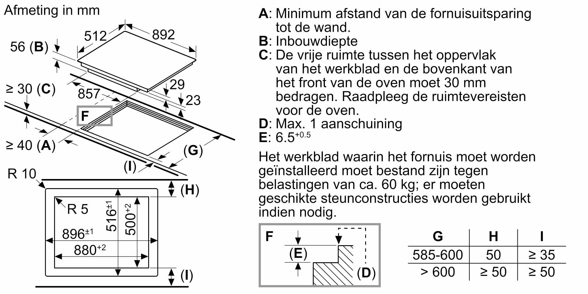 Inbouwmaten (hxbxd): 5.6 cm x 89.6 cm x 51.6 cm
