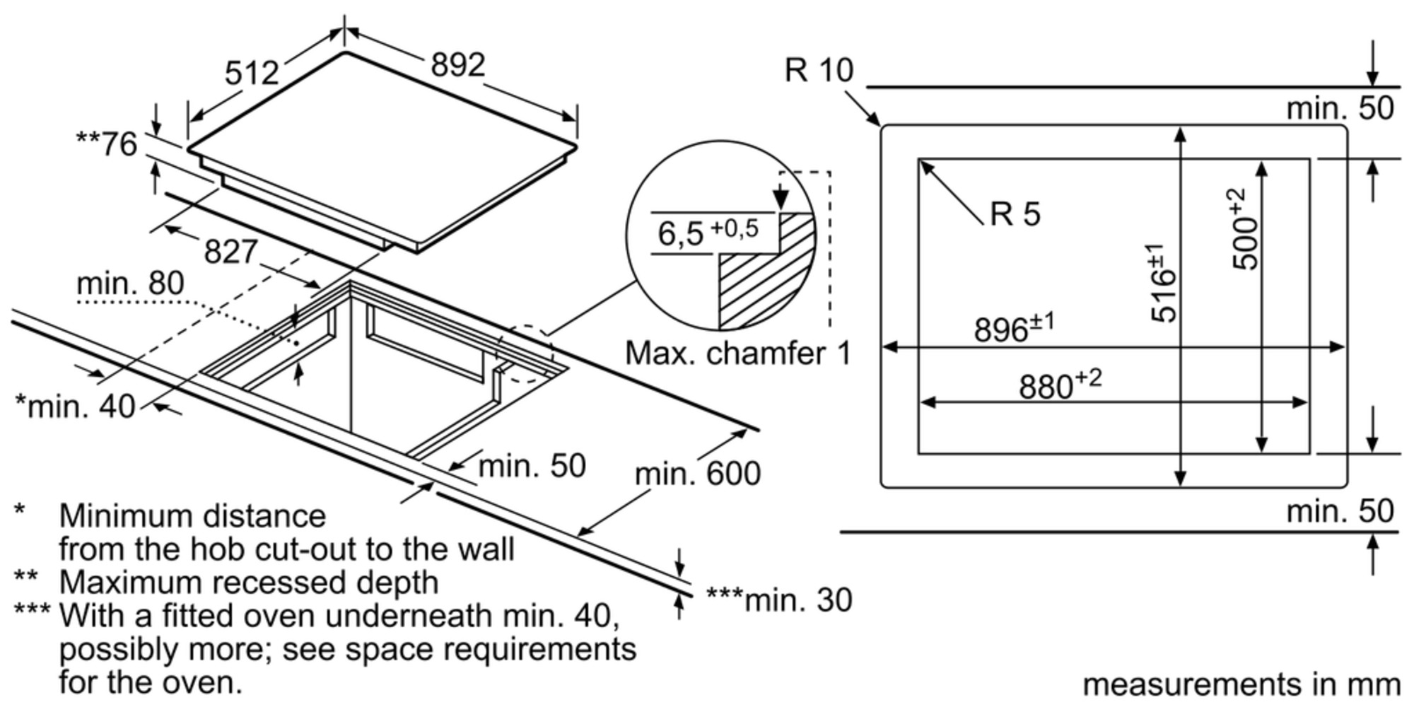 Ombouwraam voor vlakke inbouw in een houten werkblad benodigd (optionele accessoire)