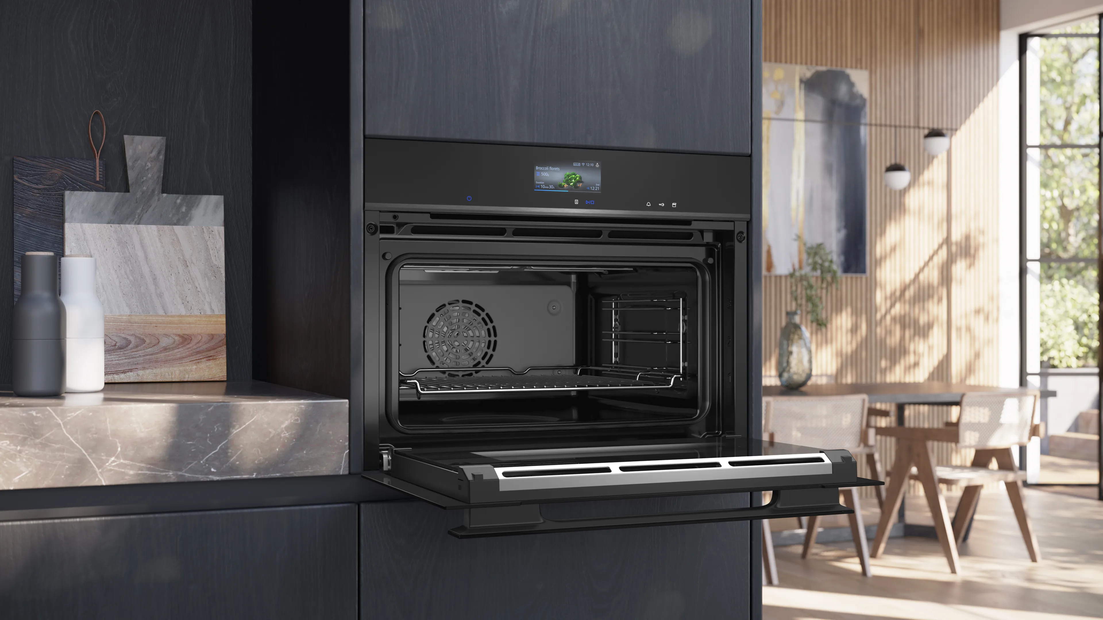 Compacte bakoven met stoom met 22 verwarmingssystemen: 4D hetelucht, Onder- en bovenwarmte, Circulatiegrill, Grootvlakgrill, Kleinvlakgrill, Pizzastand, coolStart, Onderwarmte, Langzaam garen, Voorverwarmen borden, Warmhouden, Hetelucht mild, Onder- en bovenwarmte Grill, stoom, regenereren, gistdeeg laten rijzen, ontdooien, sous-vide, Circulatiegrill + stoom, Warmhouden + stoom, 4D hetelucht + stoom, Onder- en bovenwarmte + stoom