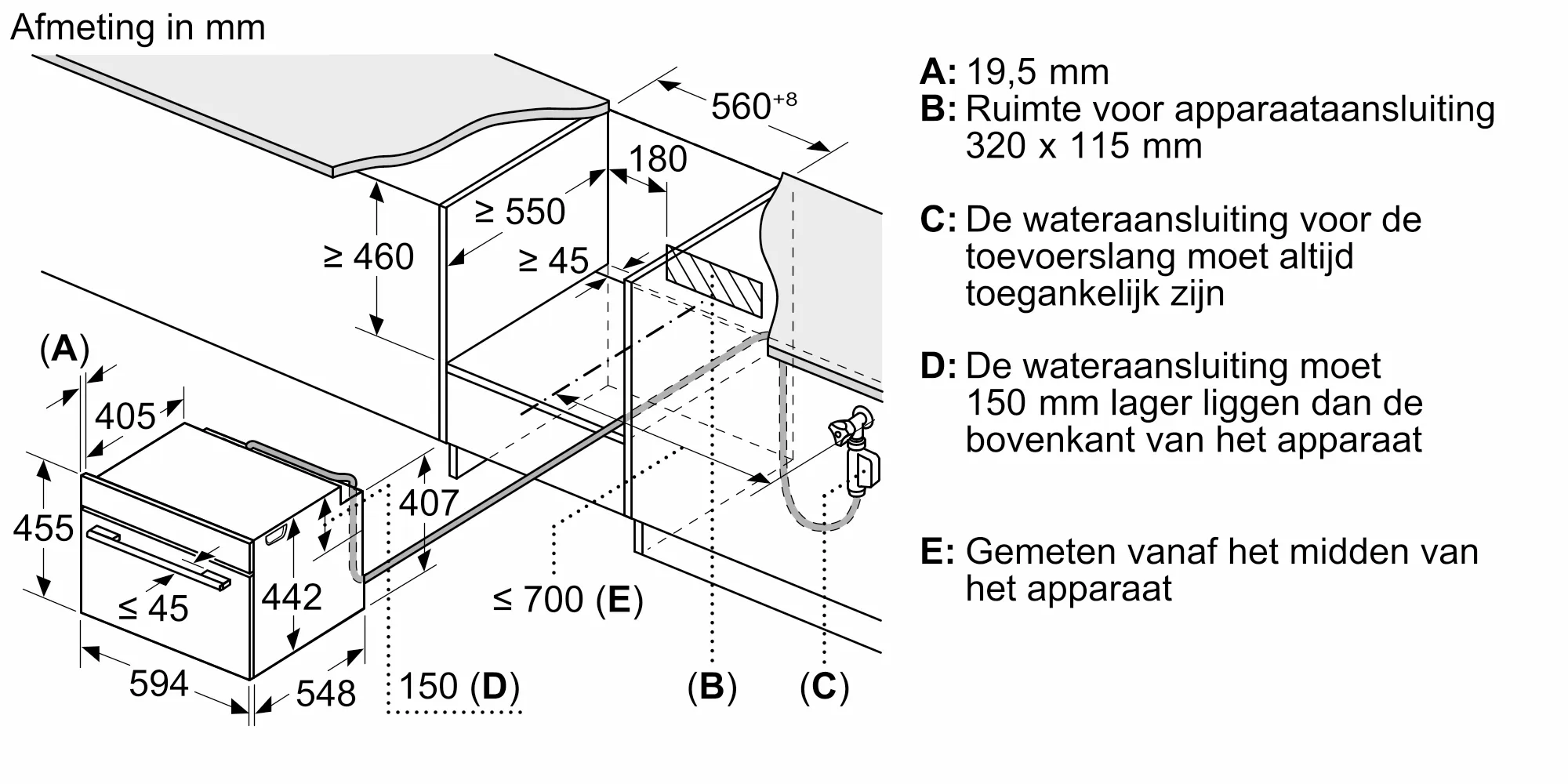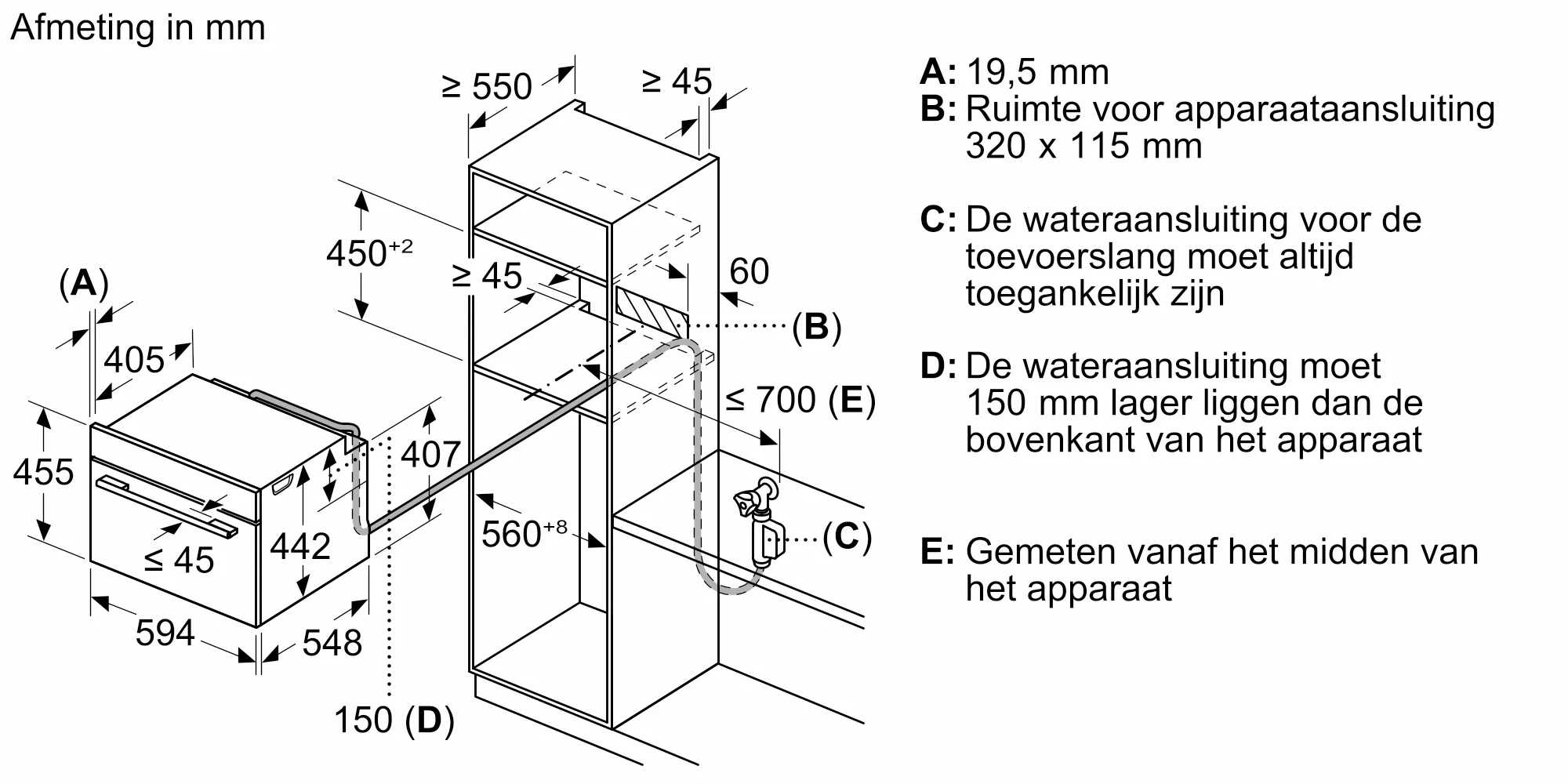 Inbouwmaten (hxbxd): 450 - 455 x 560 - 568 x 550 mm