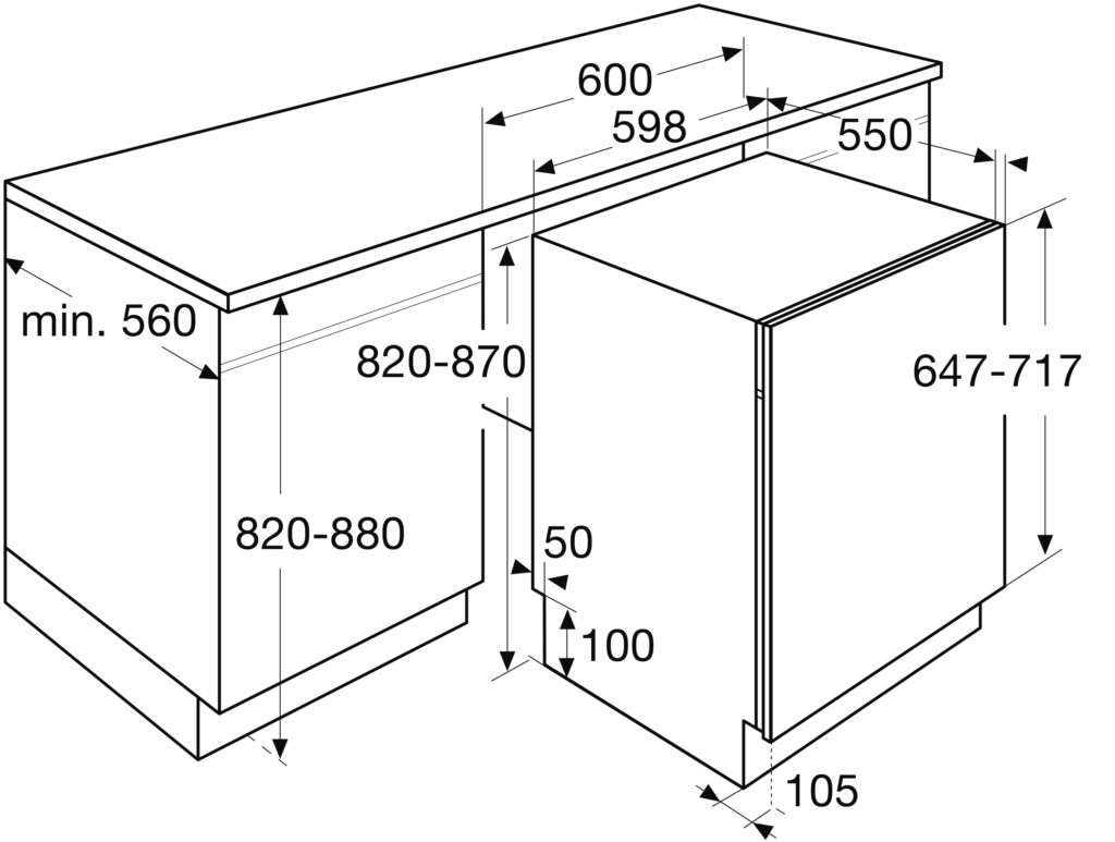 inbouwmaten (hxbxd) 820/880 x 600 x 560 mm